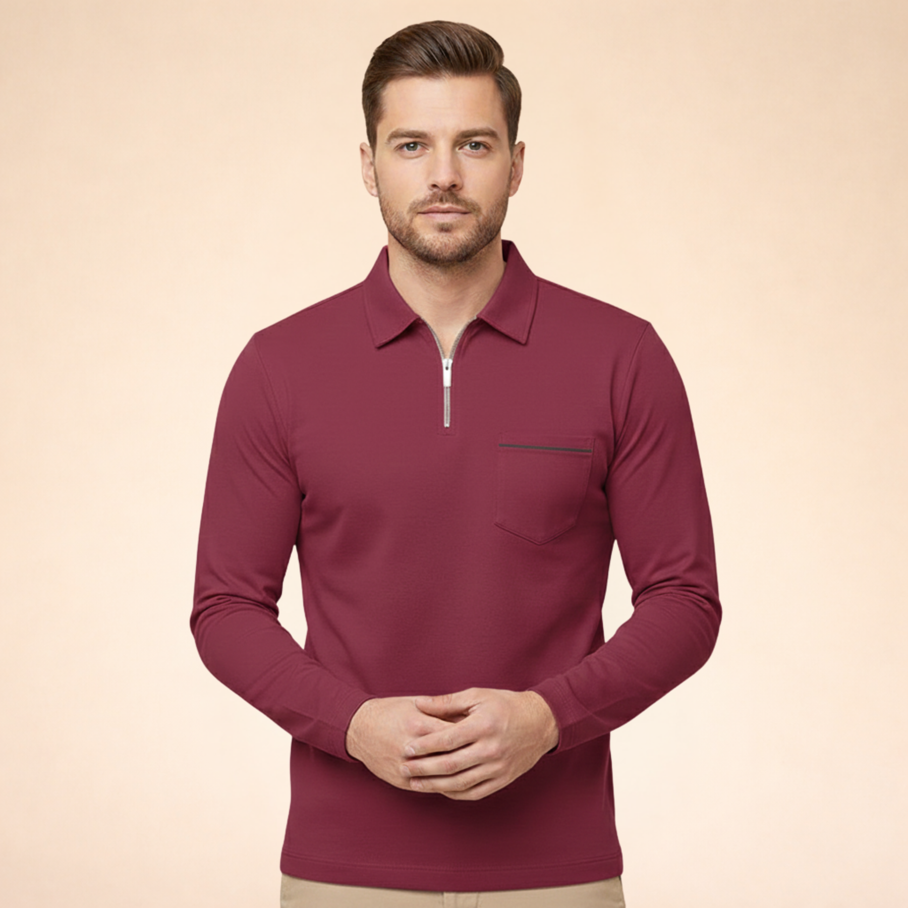 Louis Long Sleeve Polo Shirt with Chest Pocket – Classic & Versatile