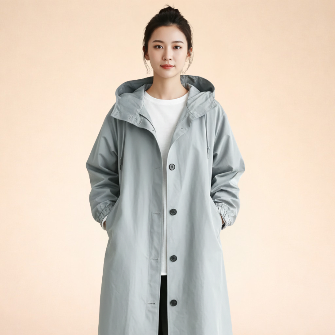 The Valeria hooded coat blends sophisticated design with reliable comfort. Its long, flattering silhouette and protective hood make it an essential for cold days, whether you're navigating the city, commuting, or enjoying a casual outing. A perfect balance of style and practicality for modern wardrobes.